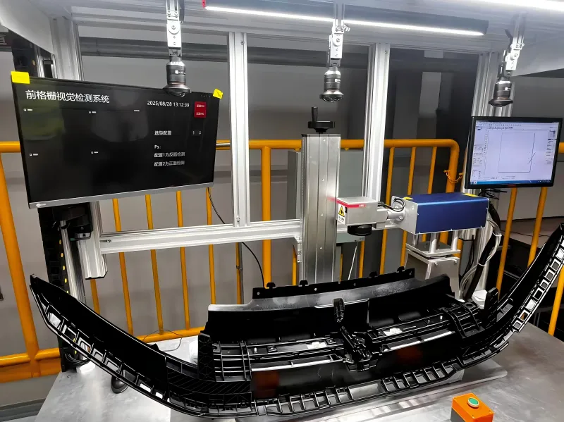 专为前格栅卡扣安装情况检测设计。配备两台工业相机,搭配广角视野镜头,可全面捕捉格栅细节,精准识别卡扣漏装、错位等问题,有效保障零部件安装质量,提升汽车制造环节的检测效率与可靠性。